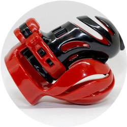 Une cage de chasteté en plastique ABS avec un système de fermeture pratique et une partie pour placer également ses testicules ! Petite pour moi, mais assez complète dans l’ensemble.