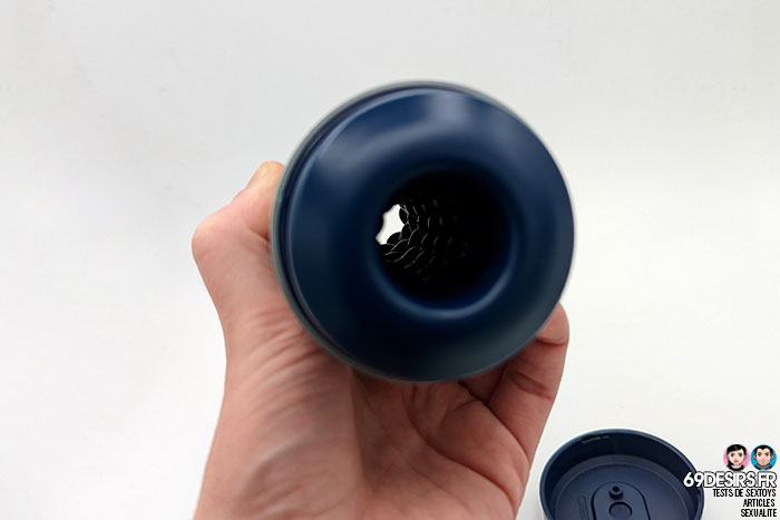 Comme je l’ai indiqué, vous avez deux côtés utilisables. Personnellement, j’ai préféré le côté plus étroit, avec les petites bosses à l’entrée avant d’atteindre la zone que j’appelle le « hachoir » qui vient stimuler plutôt fortement le gland. L’autre côté est pas mal non plus, la pénétration est moins aisée à l’entrée, mais on sent que le diamètre est plus large dès le début. Que ce soit d’un côté ou de l’autre, on peut jouir assez facilement, mais attention tout de même au moment de jouir, car si le couvercle est retiré, vous en mettez un peu partout.