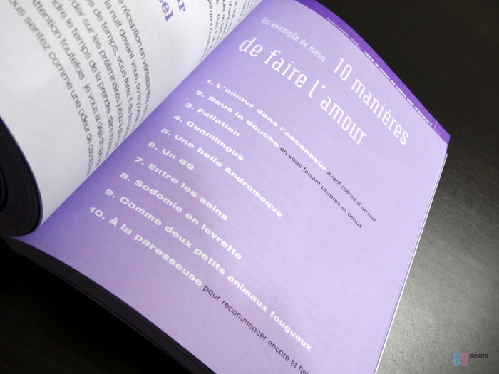 Vous l’avez compris, ce livre traite de tous les sujets relatant au sexe. Évidemment, la liste est non exhaustive, tout comme nos pratiques et nos envies ! La Musardine reste fidèle à elle-même. Ce livre est ludique et bien décomposé. Vous passez du point 3 au 36 sans perdre un quelconque fil et les dires sont illustrés et expliqués de façon simple. Même si le sexe est quelque chose d’élémentaire, nous ne pouvons pas tout connaître. C’est ainsi que ce livre nous offre davantage de perspective en abordant des sujets encore très tabous (sodomie, domination) de façon simple.