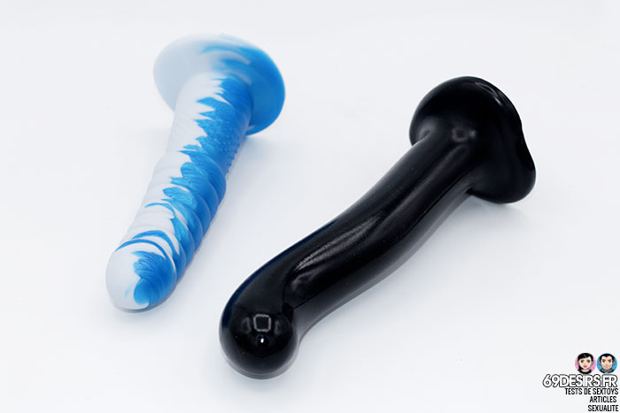 Le gode P&G Spot à côté du gode double densité de Strap-On Me