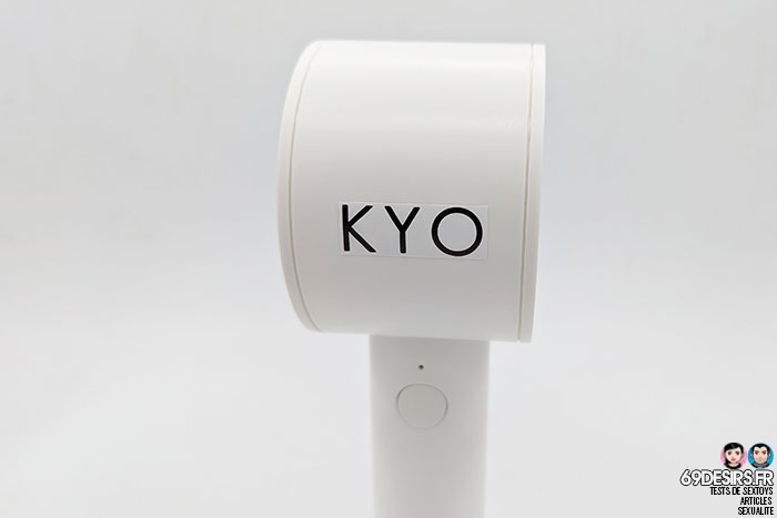 Il est également possible de fixer le bras contenant la gaine sur son socle ventousé. Pour y parvenir, il faut dévisser une petite rondelle sous le bras, puis visser celui-ci sur la vis présente sur le socle. Ensuite, ce socle peut être ventousé, sur une table, par terre, sur un mur, tant que celui-ci est compatible. Oubliez une table en bois par exemple. Mais pour l’utiliser à son potentiel maximum, on peut allumer le Kyo Beat. Il faudra appuyer sur le seul bouton présent, qui se situe sur le haut du manche. Aucun pictogramme ou visuel n’est présent sur ce bouton, il est tout lisse.