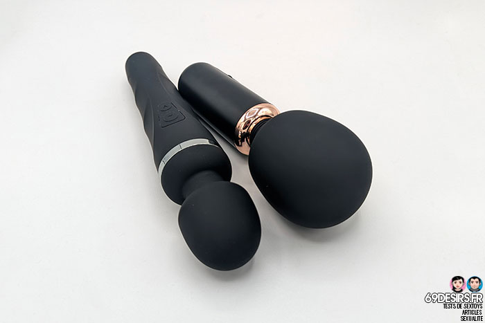 À part le fait qu’elle soit noire et dorée (ou rose gold) selon comment on la voit, sachez qu’elle n’est pas bien lourde ! En effet, celle-ci ne pèse que 303 grammes ! Si par exemple, je compare la Lolly Wand à la Doxy Die Cast 3R (qui possède une plus petite tête), cette dernière pèse 367 grammes, la Smart Wand 2 Large pèse 395 grammes, tandis que la We-Vibe Wand pèse 440 grammes. C’est donc une wand plutôt légère.