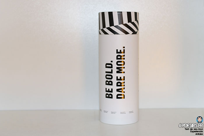 Il s’agit d’un beau cylindre en carton blanc avec la mention BOLD écrite bien en évidence. Du noir et du blanc composent ce packaging. C’est épuré. Tellement épuré qu’on ne douterait même pas qu’un masturbateur se cache à l’intérieur. À l’ouverture, on découvre le masturbateur, un manuel d’utilisation et c’est tout. Néanmoins, une fois le masturbateur ouvert, vous trouverez une capsule en plastique à l’intérieur de la gaine, renfermant un échantillon de lubrifiant Pjur à base d’eau.