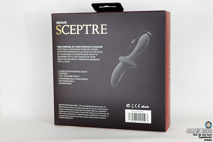 Quand j’ai vu la boîte du Nexus Sceptre, j’ai eu l’impression qu’il y avait de grands changements chez Nexus. Il s’agit d’une boîte en carton qui coulisse avec sur le devant, le Nexus Sceptre et au dos, une présentation du stimulateur afin d’en apprendre un peu plus sur lui.