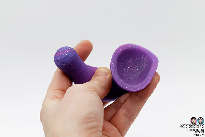 Malheureusement, je n’ai pas réussi à trouver son poids, mais il est très léger. Il faut dire qu’il est réalisé en silicone liquide, qui possède une densité moins importante qu’un silicone plus standard. Et bien entendu, vous pouvez voir qu’il possède des paillettes !