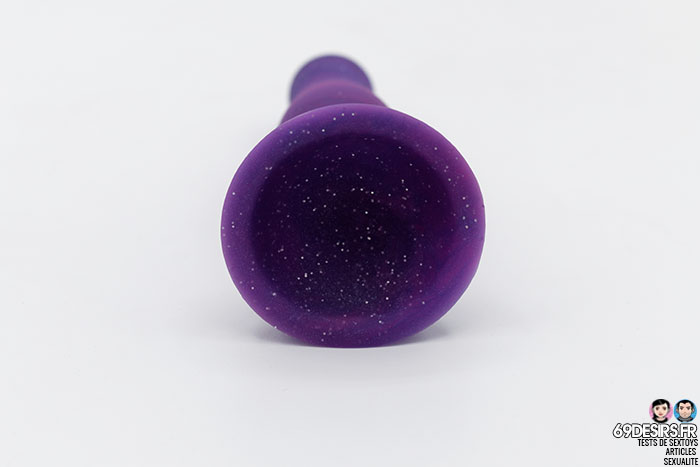 Sa forme est donc assez fine, avec une extrémité arrondie, on retrouve également la mention Lovehoney dessus, gravé dans le silicone. Et bien entendu, tout comme le gode Galaxy, celui-ci est enrichi de paillettes qui lui donne cet aspect stellaire ! C’est toujours un plaisir pour les yeux !