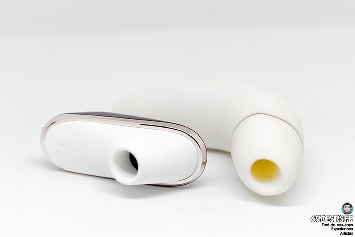 En effet, le modèle Starlet mesure 8,4 cm de long pour 4 cm de large et une hauteur de 5,2 cm. Ici, le Satisfyer Pro Traveler mesure 9,8 cm de longueur pour 3,6 cm de large et une hauteur de 4,6 cm. C’est donc vraiment kif-kif entre les deux. Le trou d’aspiration mesure 1,9 cm sur 1,9 cm, ce qui est assez large par rapport à d’autres stimulateurs du genre comme le Lelo Sona et Lelo Sona Cruise par exemple.