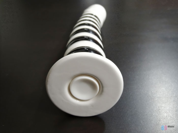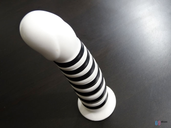 Enfin un pénis à l’aspect particulier ! En effet, le gode est bicolore… il présente des rayures en noir et blanc comme un zèbre. D’ailleurs, à chaque rayure, son ondulation, un peu comme les jeux d’enfants où il faut empiler des anneaux en bois, le premier étant le plus large… Mais c’est moins large que le jouet de vos enfants tout de même ! Chacun ses joujoux !