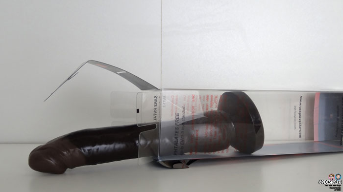 Il n’y a pas de couilles sur notre gode black mais à la place une superbe base qui a deux utilités. La première, c’est qu’il peut servir de base pour harnais. Et la seconde, c’est qu’il s’agit d’une ventouse. Je râle souvent à cause des godes ventouses qui ne ventousent pas, ici, la ventouse est ultra performante. Et c’est d’ailleurs la seule marque que je conseille si un lecteur veut un gode performant à ce niveau-là.