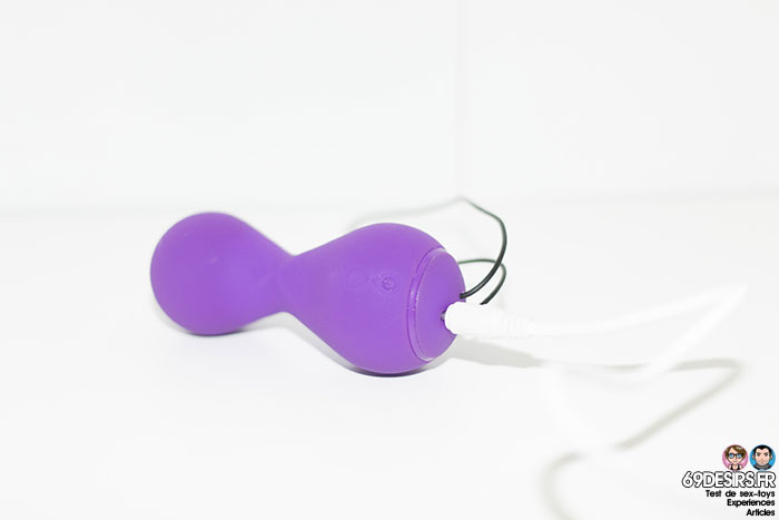 Les boules de geisha sont de couleur violette et n’existent pas dans un autre coloris. On retrouve près du cordon un petit trou pour insérer le cordon de charge, un bouton d’allumage et une goutte qui servira de témoin lumineux.