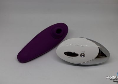 Autre différence avec la version Premium, le Womanizer Classic est entièrement constitué de plastique ABS avec uniquement la tête du jouet en silicone. Clairement, c’est la grosse différence visuelle entre les deux. Ici, nous avons un plastique ABS violet et brillant, qui donne un aspect très plastique et « Playschool » au jouet. C’est également le sacrifice à faire pour avoir un sextoy un peu moins cher. Rassurez-vous, le plastique ABS est un matériau sain pour le corps et ne contenant pas de phtalates. Quand on le touche, il est très lisse et glisse un peu, contrairement au côté soyeux du silicone et sa très fine granularité.